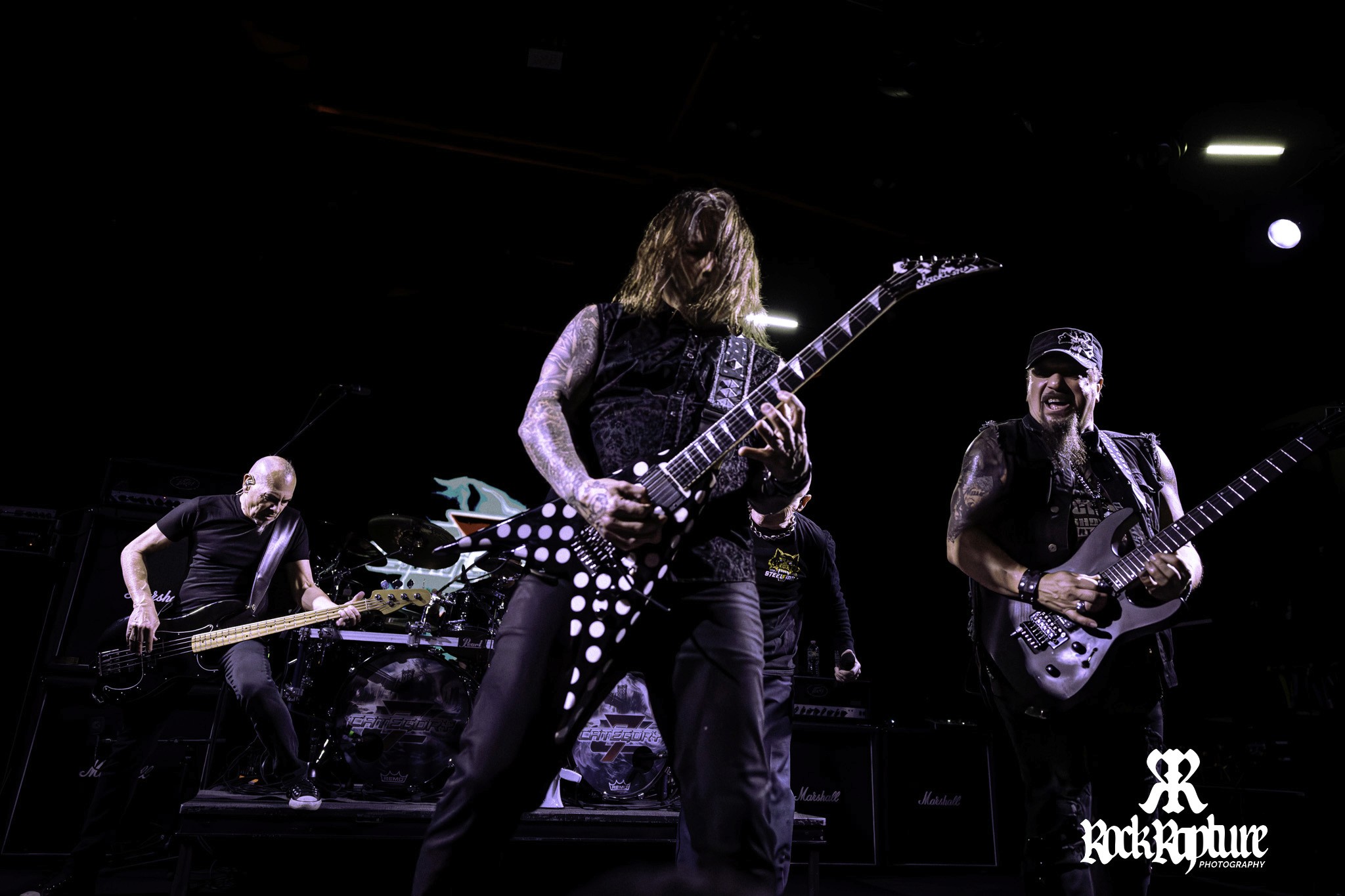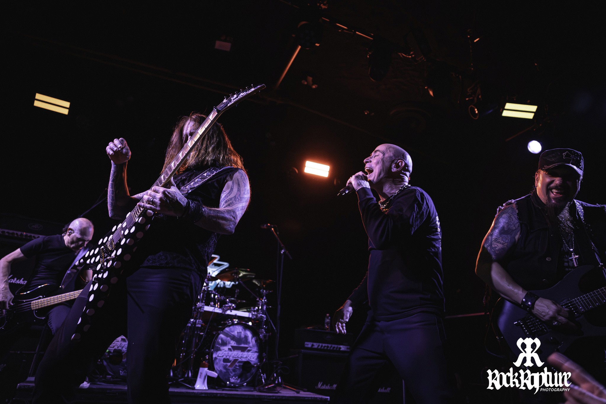 As the lights went down, Category 7 took the stage—an extremely hard-hitting metal band featuring not only John Bush, but an all-star lineup including former Machine Head guitarist Phil Demmel, guitarist Mike Orlando of Adrenaline Mob, and Jason Bittner of Shadows Fall on drums. Filling in for Exodus bassist Jack Gibson, who was unable to make the tour, was Armored Saint’s own multifaceted Joey Vera, holding down the low end for the night.