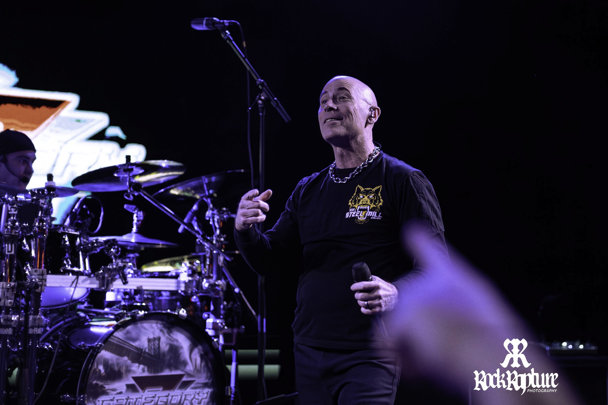 The white noise gives way to a scream, launching into the drum-heavy intro of Potter’s Field—an ironic opener, as these were the first notes fans heard from John in Anthrax on 1993’s Sound of White Noise, an album heavily represented throughout the night. As he delivers the opening line, the crowd erupts, with heads banging, fists pumping, and everyone singing along.