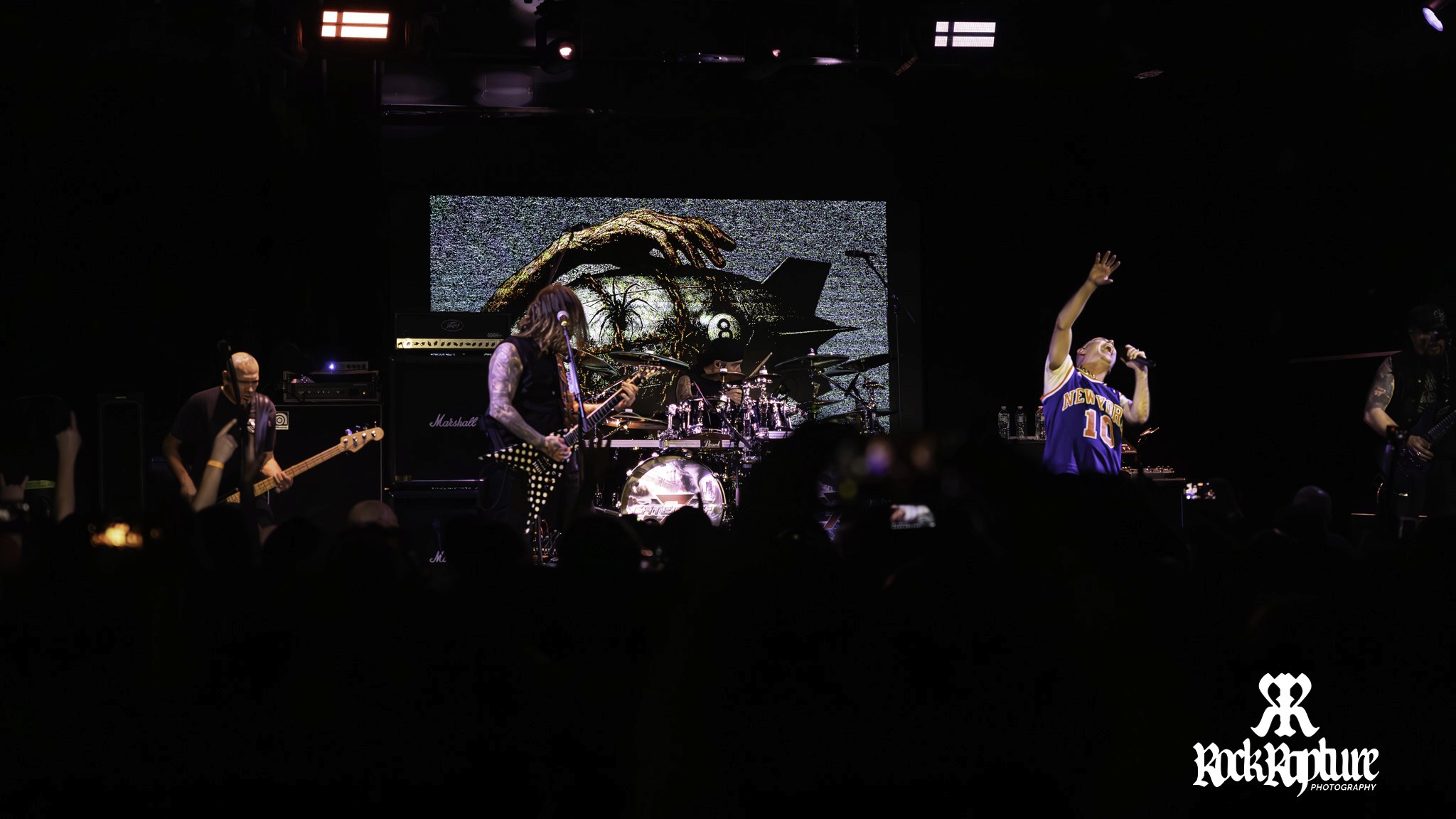 After a brief break, the lights dim once again and the familiar hiss of white noise slowly fills the room, building steadily and mirroring the anticipation of a crowd that has waited more than two decades to finally hear these songs performed live. The band retakes the stage, John now sporting a New York Knicks jersey for his Anthrax set, and the journey through sound is about to begin.